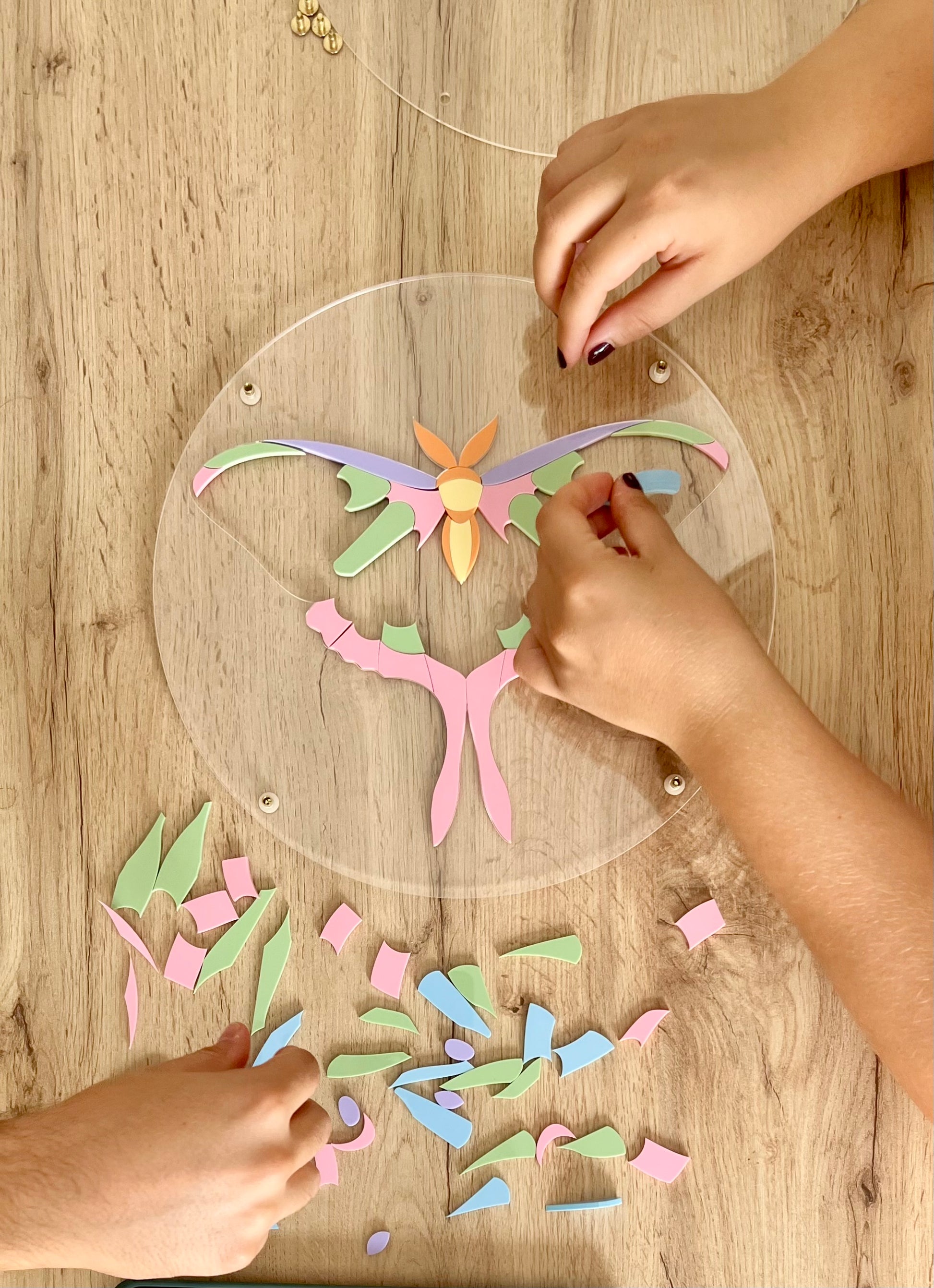 It arrives disassembled, with each precision-cut acrylic piece crafted from premium, high-gloss material in soft, matte pastel tones. Once completed, it becomes a modern decorative piece, perfect for displaying on walls.
